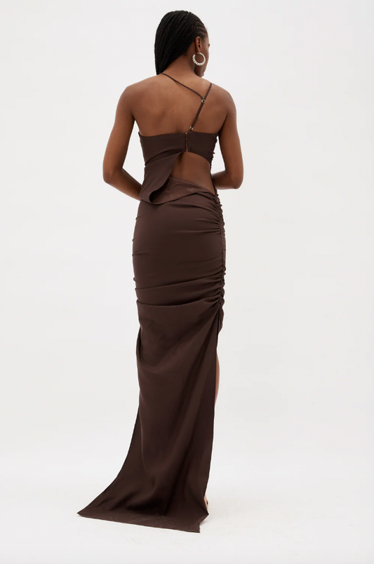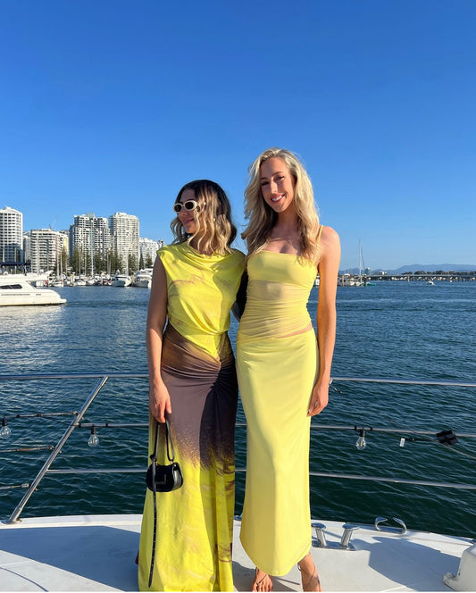 Meshki Eloise Hand Beaded Mini Dress - Gold Swirl Print
