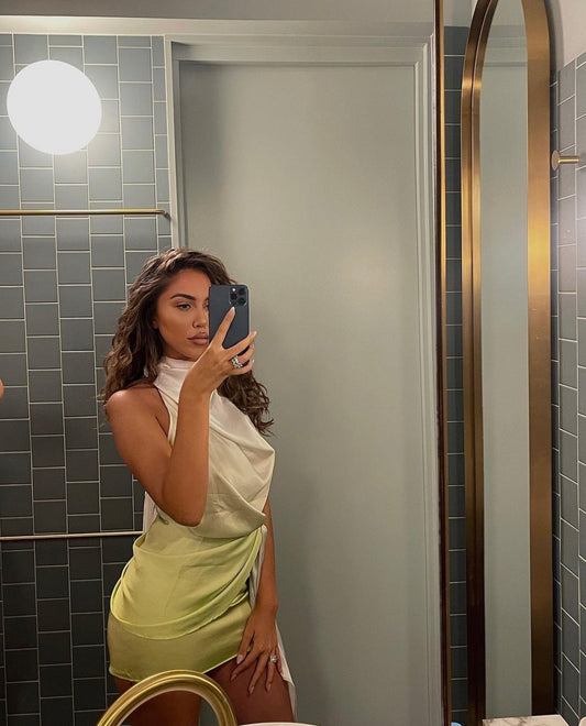 Meshki Eloise Hand Beaded Mini Dress - Gold Swirl Print