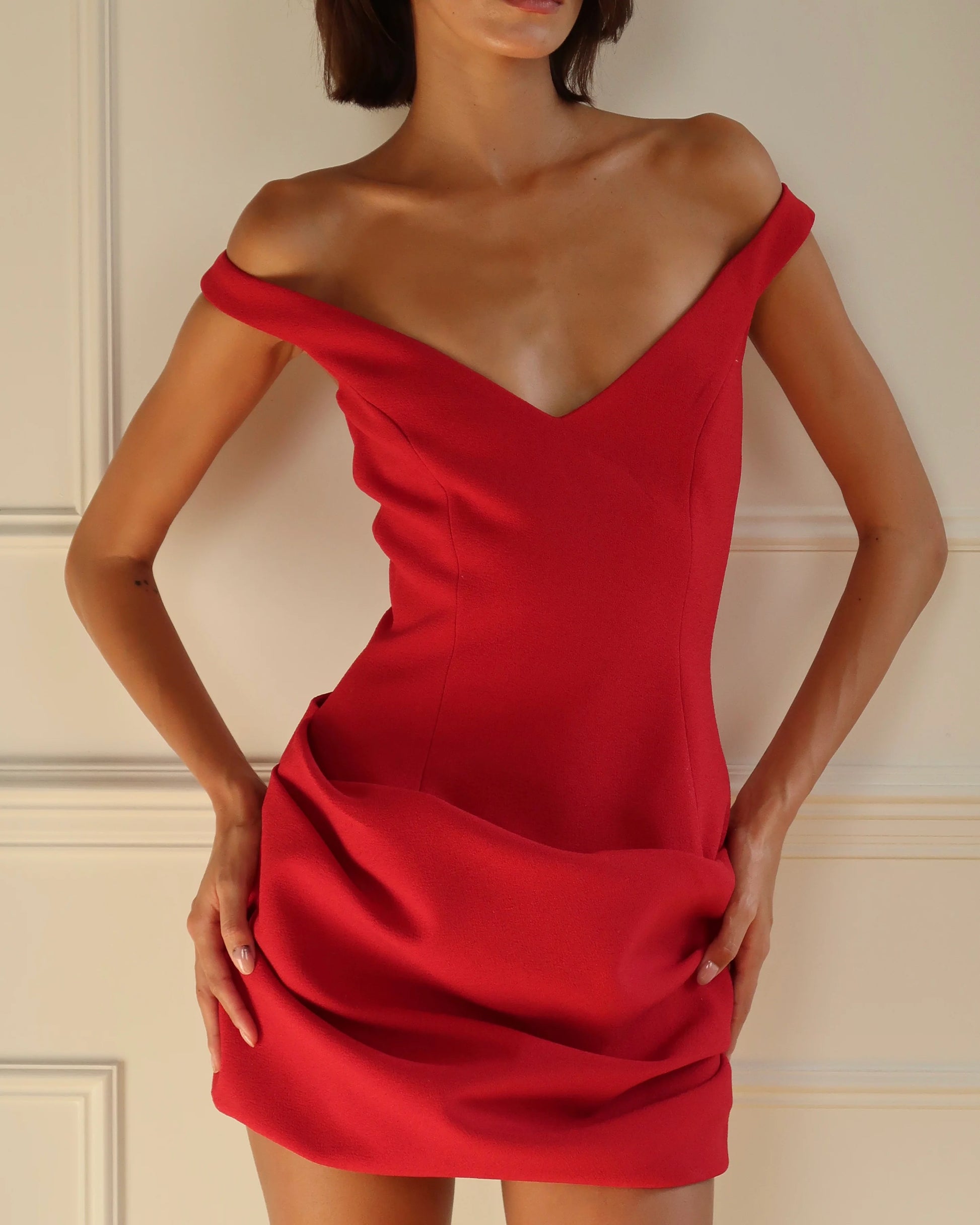 Dare to turn heads in the Arcina Ori Avery Mini Dress—a striking red mini that commands attention with effortless sophistication. Crafted from sculpting crepe, this sensual piece features a chic off-shoulder neckline that beautifully frames the décolletage, while strategically placed draped tucks at the hips create a flattering, feminine silhouette. Whether you're stepping into an evening soirée or making a statement at a special event, Avery delivers that perfect blend of bold elegance and wearable confidence. Pure showstopper energy.